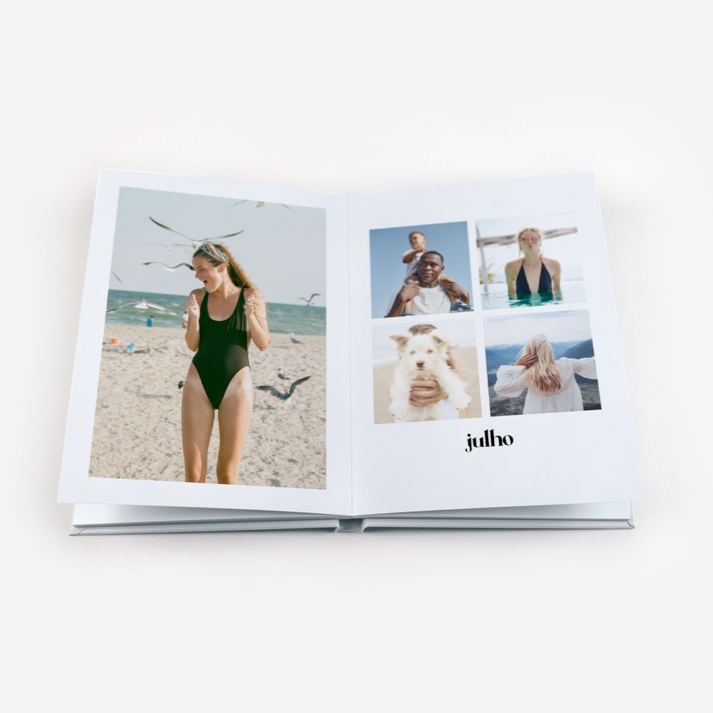 A capa rígida em cartão duro oferece proteção robusta e um acabamento premium, mantendo suas memórias seguras por muitos anos.