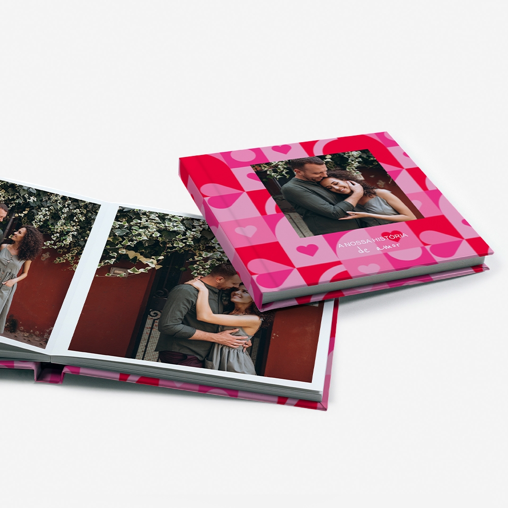 A capa rígida em cartão duro oferece proteção robusta e um acabamento premium, mantendo suas memórias seguras por muitos anos.
