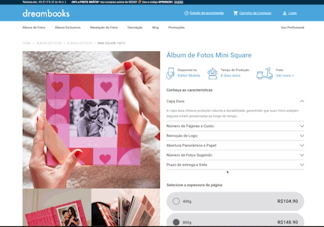 Monte o seu produto no Editor Online Dreambooks como desejar e clique em encomendar.